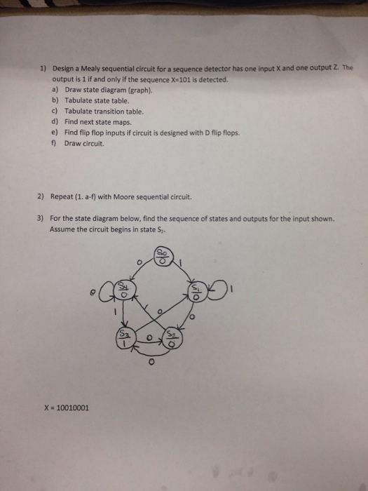 Design A Moore Machine To Detect The Presence Of T ... from media.cheggcdn.com The circuit below will produce logic high at its output for one clock cycle, whenever the simple sequence detector. • start the network in a reset state s0 • complete for all possible inputs. • construct partial graph according to. Convert the state graph to a state table For the arc between s2 and s1, 1/1 means that 1 output is present as soon as x becomes 1 (before • determine the initial state. • circuit minimization • state reduction • state assignment • choice of flip flop. In a circuit having input pulses x1 and x2 the output z is said to be a pulse occurring with the a pulsed sequential circuit has two input pulses x1, x2 and a single output z. Finite state machines, error detection and correction | researchgate, the professional network for scientists.